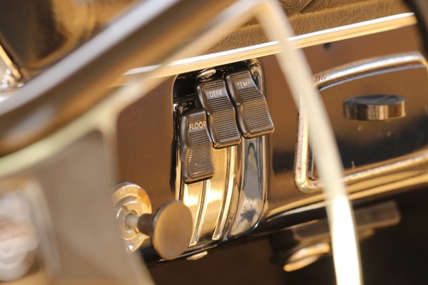 A műszerfal közepén lévő kapcsolók is döbbenetesen gyönyörűek, tipikusan az olyan részletek közé tartoznak, amik miatt egy technokrata veterános szív szerelmes lesz egy járműbe. Ha már kapcsolók, aranyos, hogy a bajuszkapcsolón a reflektor funkciója csupán villantásra szolgál, állandóra a lábtérben lévő kapcsoló lábbal történő lenyomása után lehet kapcsolni – elterjedt megoldás volt ez annakidején több gyártónál is, ma már mosolygunk rajta.