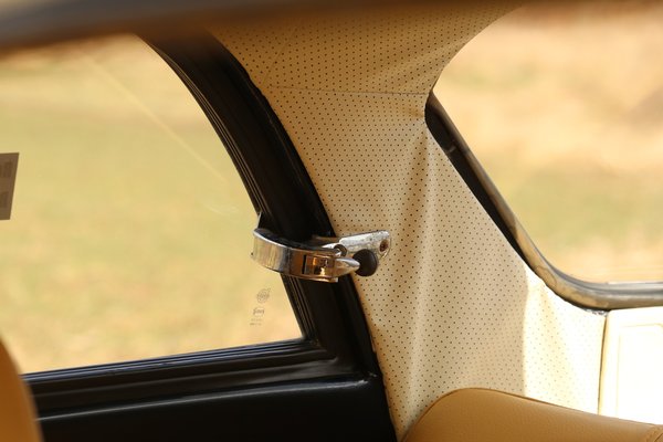 Finom részlet a hátsó ülések oldalain kialakított könyöklő. Van rajta hamutartó is – a hatvanas/hetvenes években sikk volt cigarettázni, hihetetlen, hogy a kocsik szinte mindegyik üléséhez járt hamutartó is!