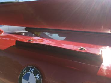 Az alkotó biztosra ment, a szárny külső pereme alá szivacshoz hasonló anyagot ragasztott, a pótféklámpát pedig az örökkévalóságnak rögzítette két alátétes csavarral, amit nem volt rest jól meghúzni sem.