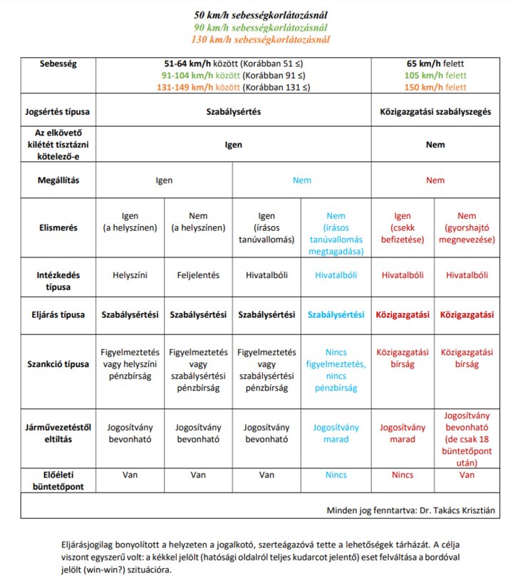 A szabálysértési jogban azonban meg kellett hagyni a csekély mértékű gyorshajtások szankcionálásának lehetőségét, anélkül joghézag keletkezett volna pl. a városban 50 km/h felett de 65 km/h alatt száguldozók vonatkozásában. Az pedig megengedhetetlen, hiszen jogállamban semmilyen turpisság nem maradhat adekvát büntetés nélkül. Feltéve, hogy a hatóság tudomására jut. Az egy másik kérdés, hogy a hatóság mennyire törekszik az ilyen csekély szabálysértések kiszűrésére és szankcionálására a közutakon.