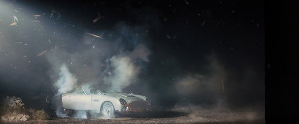 Bár az 1484-es Aston Martin a Skyfall forgatásán is a stúdió raktárában volt, az autó látványos megsemmisülése miatt érthető okokból szükség volt egy replikára. Ehhez a nagyszabású jelenethez a német Voxeljet cégtől rendeltek három darab 3D nyomtatott 1:3 méretarányú DB5-öt, a 18 alkatrészből álló szettből végül a The Propshop Modelmakers Ltd. épített az eredetire megszólalásig hasonlító makettet. A robbanáshoz szükség volt egy igazi autóra, egy DB5-öt persze még ez a szuperprodukció sem pusztíthatott el, ezért egy Porsche 928-at használtak, majd digitálisan változtatták át Aston Martinná.