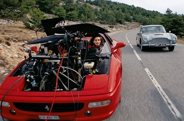 Pierce Brosnan első Bond-autója a BMW Z3 volt, ettől még vezethette a veterán DB5-öt. Az eredeti példányok helyett a tökéletes állapotú, DB5/2175/R alvázszámú autót mutogatták a közeliken, az üldözéshez viszont vettek két felújításra váró példányt (DB5/1484/R és DB5/1885/R). A Ferraritól kölcsönkapott F355 GTS-sel a 1484-es Aston Martin kergetőzött a hegyi úton, amikor a kaszkadőröknek nem adta ki. Másnapra kikalapálták, a Ferrari viszont sokkal rosszabbul járt, az olaszok kérésére átírták a forgatókönyvet, hogy az okozott kárért cserébe legalább a Xenia Onatoppot játszó Famke Janssen nyerje a párbajt az F355-tel.