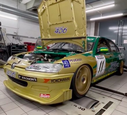 De ezeken kívül is szinte végtelen mennyiségű, rettentő kívánatos versenyautó készült akkoriban. Például a Peugeot 406 Super Tourer, amiből most elkerült egy példány, amit fel is dobtak a mérőpadra abban a pillanatban.