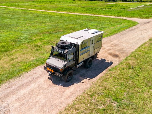 Az alkotó még 2004-ben vette az 1985-ös, U1300L-as Unimogot, majd az évek során apránként átalakította expedíciós lakóautóvá. A motor maradt az 5,7 literes, sorhatos dízel, amihez egy nyolcsebességes, manuális váltó kapcsolódik. A hét helyen csapágyazott dízelmotor mindössze 130 lóerős, így aztán sietni nem lehet vele, cserébe valószínűleg örökké tart.