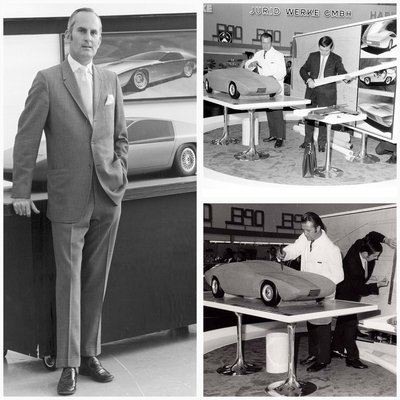 A tanulmány formája a GM-es Chuck Jordan (1927-2010) és csapatának a munkája volt, ő többek között olyan kocsikat alkotott, vett részt megalkotásukban, mint az 1959-es, hatalmas, krómtól csepegő, óriási szárnyakkal megáldott, az autóipari túlzások egyik csúcsának számító dinoszaurusz, az 5,7 méter hosszú Cadillac Eldorado – egyszerűbb nevén Series 62, mivel az Eldorado nevet 1953 és 2002 között több kocsin is használta a GM. Annak a kocsinak a főtervezője még Harley Earl (1893-1969) volt, mellette dolgozott a formán Jordan. Ez kapta a legnagyobb fecskefarkakat az autóipar történetében a szériagyártású járművek között, ha a földtől mérjük a csúcsuk 97 centiméterre ér – egyszer megmértem egy olyan kocsin, amit vezettem, tényleg hatalmasok. Elöl-hátul rakétaszerű lámpák és lökhárítódíszek ékesítik a hatalmas testet. No, miért is kalandoztam el Amerikába? Azért, hogy megértsük, annak idején Jordan és csapata telibe találta, mi kell a(z amerikai) népnek – kocsijuk elhitette velük, hogy egy harangszoknyás lánnyal a hátsó ülésen minden lehetséges és meg is történhet. Ezután Jordan nemcsak munkaadójánál lépdelt rohamtempóban felfelé a ranglétrán, hanem 1962-ben felkerült a Life Magazin 100 legjelentősebb fiatal férfijét és nőjét rangsoroló listára is az USA-ban. Öt évvel később pedig már a GM német leányvállalatának, az Opelnek lett a formatervezési igazgatója –, ő tervezte és engedte gyártásba az 1968-as Opel GT-t vagy a Manta A-t is. Mellesleg 1986-1992 között a GM formatervezési alelnöke is volt, mielőtt nyugdíjba ment –, több mint negyven éven keresztül formatervezett autókat s volt felelős a GM autói közül jópár megjelenéséért. Arról, hogy ez az Opel-féle formatervező részleg mekkora durranás volt annak idején, itt írtunk korábban.