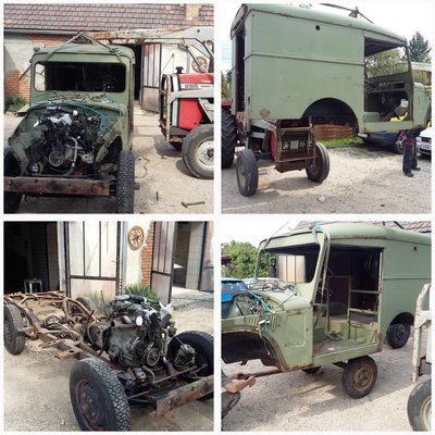Hat éve hirtelen felindulásból vásárolta Szerbiában. Hazahozta. Itthon teljesen szét lett szedve. Minden eleme, darabokra. Leemelték a karosszériát az alvázról, s külön-külön restaurálták.