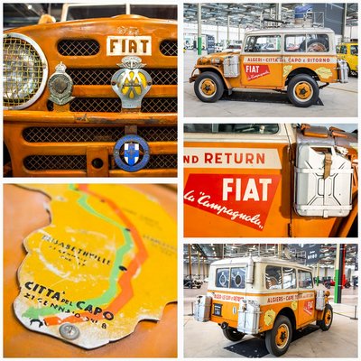 A hosszú tengelytávú Campagnolából két speciális, zárt karosszériás jármű készült, amelyeket masszív tetőcsomagtartóval, két további fényszóróval a sárvédőkön, összecsukható utazóágyakkal, hálózati okmánytartóval, további víz- és olajhőmérőkkel, üzemanyagkannákkal szereltek fel. A karosszériához dobozokat, egy lapátot, egy csákányt és különféle alkatrészeket, az első lökhárítóra például egy erősített teljes laprugóköteget szereltek. Az ajtóra FIAT la „Campagnola”, az oldalaikra és a hátuljára pedig „Algeri – Città del Capo e ritorno” (angolul, olaszul és franciául) volt felírva. A kifelé vezető úton a stábhoz csatlakozott két operatőr s a főszervező felesége. Északról délre pótkocsit is vontattak, ebben voltak a kamerák. Útközbeni fejlesztési igényeiket táviratban közölték, azokat a gyárban megvalósították, majd a második kocsit leküldték Fokvárosba. Már kifelé vezető úton megdőlt egyébként a Szaharán való átkelés rekordja utánfutós autóval: 3800 km sivatag kevesebb mint hét nap alatt! A kezdet biztató volt!