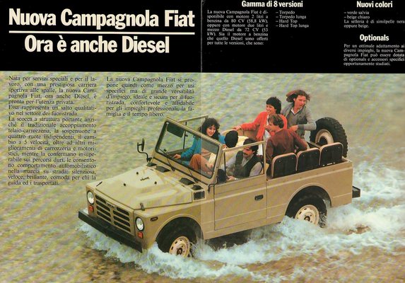 Jól megkérték a mezőgazdasági, tűzoltási s akár rendfenntartó feladatokra is bevethető kocsi árát, főleg, ha hozzáteszem, hogy az 1952-ben bemutatott aerodinamikus formájú V8-as Fiat 8V 2.850.000 lírába került, amiből csupán 114 darab készült. A Campagnola több mint huszonkét évig gyártásban maradt, miközben folyamatosan fejlesztegettek is – összesen több mint negyvenezer darabot gyártottak belőle.