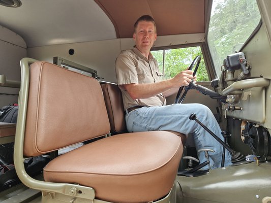 Az OT rendszámot három éve kapta meg, előtte két évig tartott a restaurálása, hat éve került be az országba. Előéletéről annyit tudni, hogy csapatszállítóként használták, s hogy hogy került hazánkba, arról beszéljen a tulajdonosa. Ő egyébként a katonai dolgok megszállottja, repülőgép kiállításokat szervez, saját múzeuma is van, csapatával veterán sugárhajtású Delfin repülőgépet is üzemeltet.
