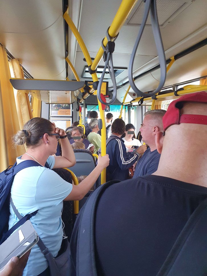 A vonatpótló busz egy kétes hírű Credo Econell volt, ami annak ellenére, hogy maximum 2-3 éves volt, nem volt a legjobb passzban. A klíma vagy nem működött, vagy csak simán nem kapcsolták be, az ajtón pedig akkora illesztési hézag tátongott, hogy három ujjamat simán kidugtam volna rajta. Az egyik utas így köszöntötte később felszálló ismerőseit: "Sziasztok! 50 fok van, levegőt nem fogtok kapni, reggel meg persze lefagyaszt, mert a pofádba nyomja a klímát.”