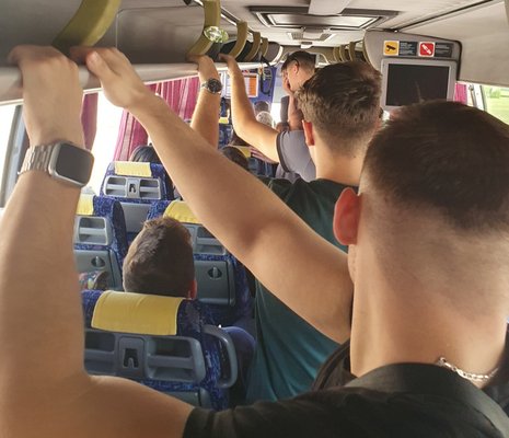 A távolsági busz alapból egész kényelmes, hogyha az ember nem akkor utazik amikor az emberek általában. Előfordulhat ugyanis, hogy bár a távolsági járatokon szigorúan tilos álló utas szállítása, a buszközlekedés mégis rászorul erre. A csúcsidőnek nem feltétlenül nevezhető délután kettőkor induló járaton például az alább látható helyzet alakult ki. Kétségkívül pozitív, hogy a sofőr nagyon megértően állt a helyzethez és senkit sem hagyott az állomáson, illetve a buszon volt egy bizonyos szocializációs értéke is a helyzetnek - volt például olyan egyetemista fiú aki az előtte álló lánnyal kezdett flörtölni - de a többiek valószínűleg a tömött busz helyett egy Stadler féle FLIRT-nek jobban örültek volna.