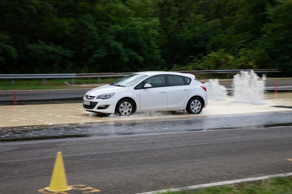 De a változó tapadású pályás szlalom se könnyű, hiszen ott rengeteg apróságra kell egyszerre figyelni, miközben a körülmények kis túlzással méterenként változnak. Ilyesmi a gyakorlatban is előfordulhat: olykor kis helyen, határhelyzetben kell manőverezni, miközben a sofőr maximálisan ismeri az autóját. Ugyanez a helyzet a locsolt emelkedővel is, ami sokszor nagyon váratlanul megvicceli az autósokat.