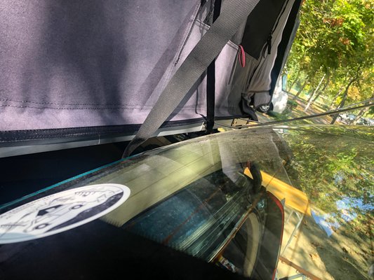 A sátor az Ikamper Skycamp Mini 3.0, az előző verziója volt Bolla Gyurinál a Dacián , illetve a Vadmusso is sokat járt vele mindenfele. Aztán érkezett a nagyobb testvér Skycamp következő modellje és most itt van a kompakt megoldás. Ez méretéből (összecsukva 146 cm hosszú és 140 cm széles) és tömegéből (57 kg) adódóan tényleg bármilyen személyautóra felrakható. Ha gyakran járunk mélygarázsba, azért arra nem árt figyelni, hogy a sátorral 33 cm-re lesz magasabb az autónk, amire még rá kell számolni a csomagtartó miatt plusz centiket is. Így a Volvó a 156 centiről 2 méteresre nőtt.