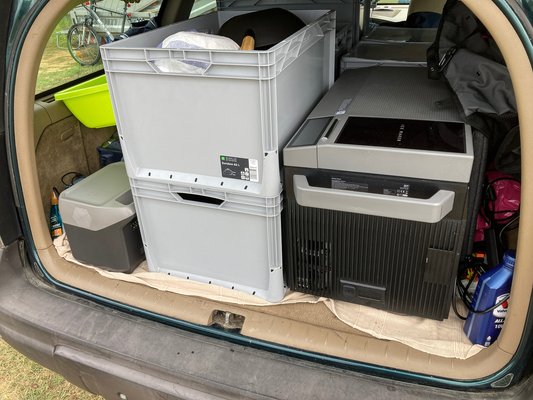 Elkezdtem összekészíteni a kempinges cuccokat, amikor kiderült, hogy valamelyik korábbi rendezvényen valószínűleg kaptak a hűtőládáim egy kis extra delejt (230 helyett 400 volt) , amitől elszállt belőlük a működtető füst. Szerencsére kisegítettek némi Ecoflow eszközökkel, így ez a probléma gyorsan megoldódott.