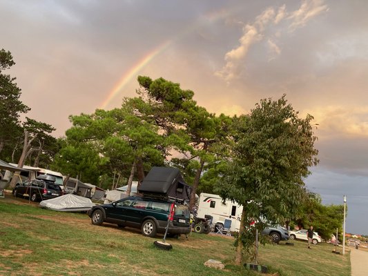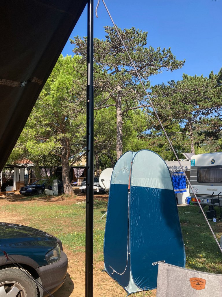 Az alapozás megvolt a kempingben, minden jól vizsgázott, így a következő cél Zadar mellett a tengerpart volt. Itt sikerült kifogni egy parti parcellát, amivel kapcsolatban vegyesek voltak az érzéseim. Eddigi tapasztalataim alapján a parti parcella az első nap nagyon jó, tök jó a felkelő nap látványa, cserébe semmi árnyék és mindenki rajtad megy keresztül plusz vihar esetén te kapod az első csapásokat. Ez idén sajnos igencsak érvényes volt errefele. Szóval nem teljesen olyan, mint az insta képeken, de azért megvan a varázsa ennek is.
