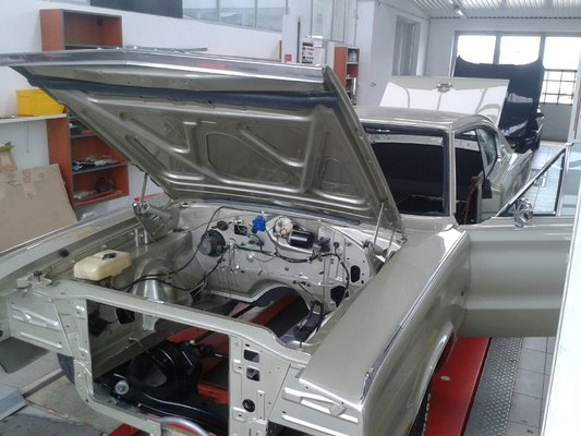 A motort és a váltót is darabokra szedték. A 383-as motor kapott egy túlméretes felújítást és síkolást egy gépműhelyben.