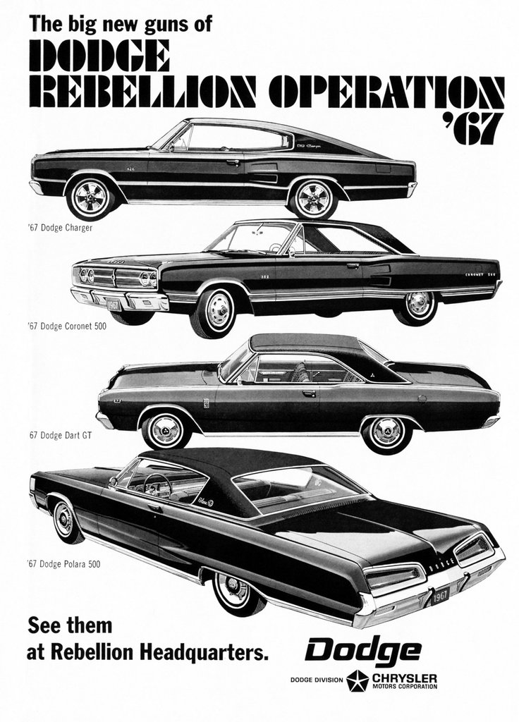 A „turné” finanszírozásába a Chrysler nem szállt be – a kocsi biztosításán kívül –, sőt, a Dodge inkább a lázadók legújabb fegyvereiként hirdette 1967-es modellpalettájukat.