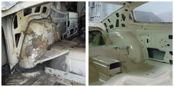 „Jelentős rozsda nem volt alatta, de nem bántam meg a műtétet, egy ilyen frame-off felújítás során egy fél napos leszedést, vagy rozsdaátalakítós kezelést nem szabad kihagyni, az időzített bomba mindig meglepetést hoz” – mondja az elvégzett munkáról András.