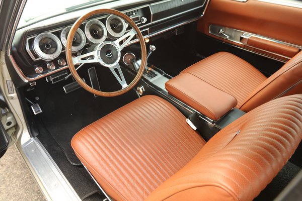 Viszont az eredeti aranyszínű vinyl ülések nagyon nem álltak jól az autónak. A fekete kárpitot újra cserélték, az üléshuzatot pedig egy őzbarna bőr váltotta fel. El kell ismerni, a fekete-őzbarna belsőtér kombinációja szintén telitalálat, az autó színét a belső tökéletesítette.