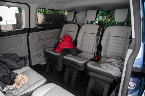 A Tourneóval például hatan utaztunk, három sorban, úgy, hogy középen a második és a harmadik sorban lett volna még egy-egy ülőhely. Mindezt úgy, hogy az utolsó üléssor mögött maradt egy nagy SUV-nyi csomagtér, ahova a teljes hétvégi bevásárlás, és hatunk cucca könnyedén elfért. A hosszú tengelytávos T4-essel úgy utaztunk öten, hogy mögöttünk volt három motor, és több napnyi cucc. A második sorban nyújtott lábbal pihenő srácok ültek nyugodtan.