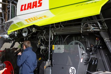 A bemutató napján is esett, így a Claas új, kompakt méretű, családi gazdaságokba szánt Evion kombájnjai is egy féltető alatt pihentek. A családi működést egyébként hitelesen adja elő a Claas, hisz a legtöbb konkurenssel ellentétben a cég mindmáig családi tulajdonban van. Az Evion voltaképpen moduláris, más Claas modelleknél már bevált részegységekből épül fel, a hathengeres, 6,7 literes dízel a Cumminstól érkezik és változattól függően 204/231/258 lóerőt tud. A szakértő olvasók hiányolni fogják a rostaszekrény (4,8 m2 rostafelület, „békaszáj-lamellás” rosták), a szecskázás (52/opcionálisan 72 késes), a magtartály (kiviteltől függően 5600/6500/8000 liter), az ürítőcsiga (330 mm átmérő, 105 fokos fordulási szög, 90 l/mp ürítési sebesség; mozgatható surrantó) szakszerű bemutatását, de igyekszem megkímélni a laikus közönséget a fulladásos haláltól, részleteket a Claas hazai forgalmazójánál, az Axiál honlapján lehet találni.