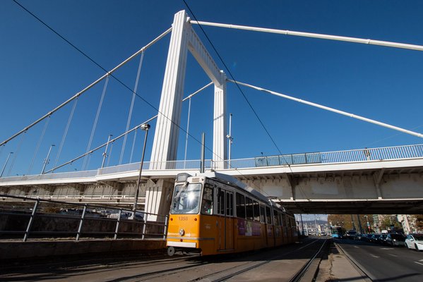 Itt aztán van mit vizsgálni, hiszen vagy autók két sávban, vagy szélesebb villamosok. A hídszerkezet nem mozdul.