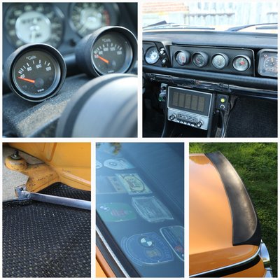 Ma ez a narancssárga az egyik leghitelesebb korabeli Alpina, története végig dokumentált, fotók és számlák tömkelege, a kalaptartón az elmúlt évtizedekben szerzett találkozók plakettjei. Lemezén karcolások és a használat nyomai látszanak– mint egy sok csatát megjárt lovag pajzsa és páncélja, olyan a 02-es. Imádom.