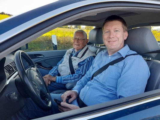 Szóval családon belül maradt a sárga, a nagybátyjától némi fizetség fejében megkapott kocsit Carsten hajtja már vagy két évtizede. Persze nem minden nap, már főleg veterán autós rendezvényekre jár vele. Legutóbb akkora mázlim volt, hogy amikor Carstennel együtt szürcsöltük az általam csak fekete víznek csúfolt híg német kávét a teraszukon, egyszer csak megjelent Gisbert. Kapva kaptam az alkalmon, s felvetettem, szívesen írnék a kocsik történetéről, s az Alpina szerelmükről.