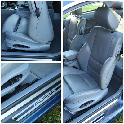Sokféle egyedi belsőt lehetett rendelni, de Gisbert e téren nem álmodott merészet: szürke színű bőr uralkodik a beltérben. Persze a kék hátlapos Alpina műszerek bekerültek a kocsiba, s a volánon megjelent a zöld-kék varrás is, rajta a Switch-Tronic jellegzetességre, a fel- és a lefele váltásra utaló nyilakkal, amely feliratot a logóba is beleírták.
