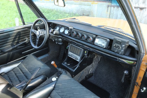 Majd kezdünk elveszni a részletekben, Gisbert magyarázza, mit miért és hogyan oldott meg, épített be. Tőle tudom meg, hogy Bovensiepenék a kormány mögé is szereltek műszereket, de általában csak egyet. Nitzsche kocsijában kettő van a kormányoszlopon, egy hűtővíz- és egy olajhőmérséklet visszajelző. Több utólag beszerelt kapcsoló is van a műszerfalon – mindegyik más, hogy vakon se keverje össze az ember őket. A normál benzinpumpa mellett van egy plusz, elektromos működtetésű is. „Ha versenytempóban használtam a kocsit, s a motor tartósan, 6-7000-es fordulatszám között forgott, nem kapott elegendő üzemanyagot a két 45-ös Weber. A kormány alá szerelt kapcsolóval ilyenkor bekapcsolható a plusz elektromos működtetésű szivattyú is, s máris teljes erejéből futhat a kocsi!”
