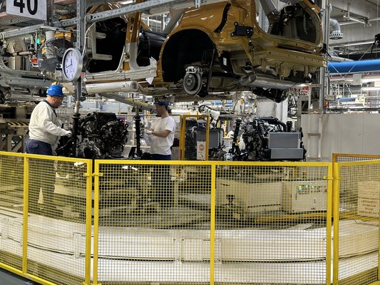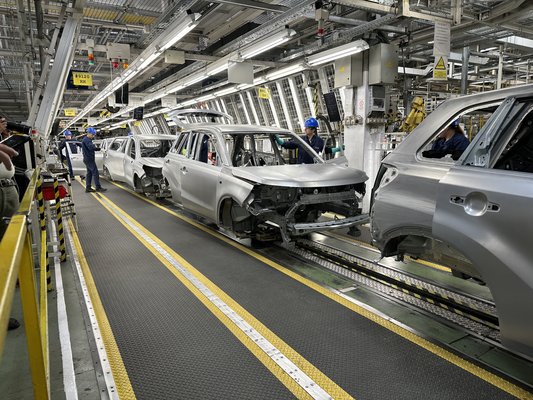 A kész vázszerkezetek karosszériaelemekkel együtt kerülnek át a fényezőüzembe, majd onnan az összeszerelésre, ahol a legnagyobb nyüzsgés van az egész gyárban. Rengetegen dolgoznak a zsúfolt sorokon és azok körül, ahol nem csak a három jelenleg gyártott modell, de a bal és -jobbkormányos, illetve a kettő- és négykerék meghajtású kivitelek is bonyolítják az alkalmazottak munkáját. Minden egy helyen fut össze: a részegységek beépítése után felkerülnek az ajtók, majd beemelik az autó alá a hajtásláncot.