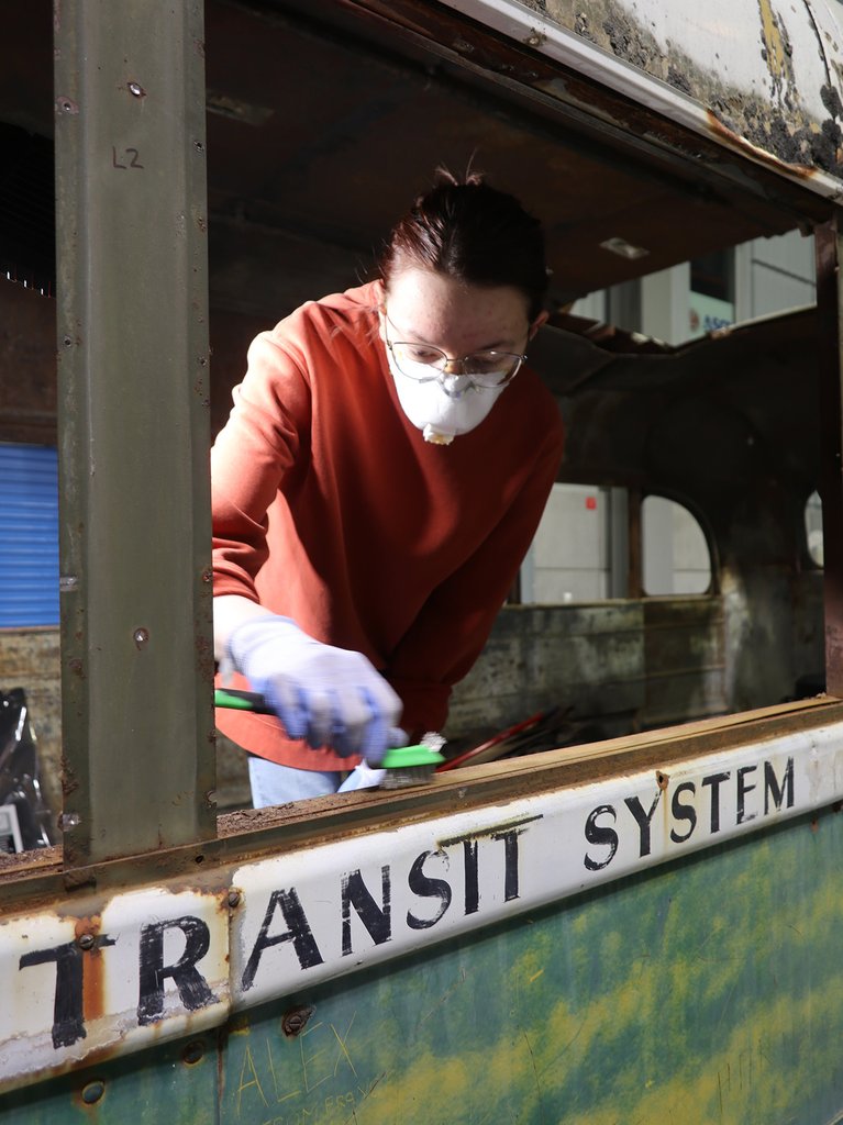 A busz ma 78 éves, minden életszakaszának nyomát hordja még: a Fairbanks-féle fehér-zöld alatt világít az iskolabuszok sárgája, de néhol az eredeti katonai olajzöldet is látni. Ennyire rétegzett múltú tárgy esetén nem egyértelmű, hogy melyik állapot visszaállítása/megőrzése a cél. A kurátorok végül átvágták a csomót, 1946-tól 2021-ig legyen megőrizve minden, a restaurátorok meg köszönték, mélyet szívtak a műgyantás tégelyből. Míg az olyan szent őrültek, mint I. Káposztásmegyeri Zsolt, a vasoxid-bázisú helyváltoztatás patrónusa fémig csiszol, alapoz és adott színkódra fúj, az adott állapot megőrzése ennél egy fokkal nehezebb: az első katonai festékpikkelyektől McCandless utolsó feljegyzésein át a helikopter szállítóhevedereinek vágott lyukakig mindennek maradnia kellett. A munkára egy szakosodott céget, a B.R. Howard Conservationt kérték fel, a projektre félmillió dollárt nyújtott a Save America's Treasures szövetségi alap – szeretnénk mi így hanyatlani itt keleten.