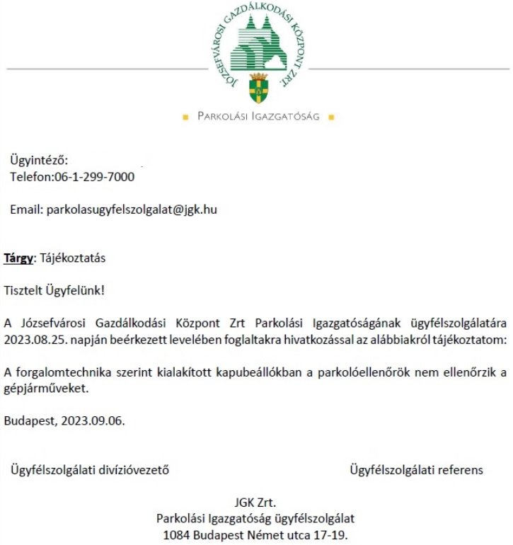 "Szó sincs extra bevételről. Ugyanis, ha azok, akik meg akarják úszni a díjfizetést, és emiatt tilosban várakoznak, szintén szabályosan várakoznának, vagy a tilosban várakozás ellenére díjat fizetnének, mitől lenne extra bevétel? Mi pedig váltakozó sikerrel járunk ilyen perekre, vannak bíróságok, amelyek a tilosban várakozóknak adnak igazat – ezeket az ítéleteket megfellebbezzük –, és vannak, amelyek nekünk, ezeket az ellenoldal szokta fellebbezéssel támadni.