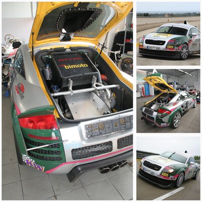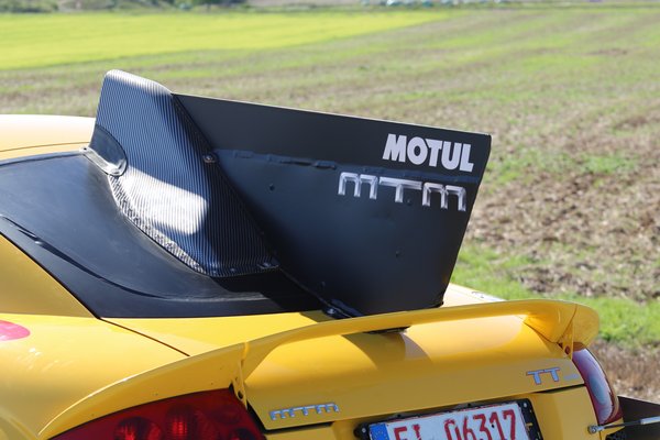 Az ötlet pofonegyszerű: egy 1,8 literes győri soros négyes hajt elöl, egy pedig hátul – ezért választottak összkerekes kocsit kiindulási alapnak. A két erőforrás egymástó függetlenül működik, a két tuningolt erőforrás kezdetben összesen 740 lóerőt tudott – nem kevés ez még ma sem, meg kell hagyni! De a rekordhoz kevés volt. Az erő két váltón keresztül jut a kerekekre, az áttételek hosszabbak, hiszen a végsebességre gyúrtak, nem a gyorsulásra. Mayer úr azt tervezte, a kocsiból pár darabot talán el is tud majd adni, így az árát is belőtte – 600 ezer eurót írt az árcédulára. TT-je így jó ajánlatnak számított volna a hipersportkocsik között. Olcsóbb lett volna, mint az akkor óriási médiavisszhangban parádézó Bugatti Veyron – mert ugye mindenkinek leesett a tantusz, hogy valójában az akkor az egész világ által körülrajongott gépállatot akarták az MTM-nél megszorongatni végsebesség témában?! Időközben emelték a kocsi teljesítményét, úgy, hogy a hengerenkénti ötszelepeseket magasabb fordulaton pörgőkre cserélték, s méretesebb lett a feltöltő is a kocsin – további részleteket nem nagyon árultak el. Ez a kétmotoros ötlet egyébként azért teljesen nem volt új, hiszen két 1,8 literes négyhengeres motort hosszába már 1987-ben is beépítettek a Volkswagen Golf Pikes Peak-be. De, Wartburg 353-ból is láttam már ilyet – ahol a hátsó motor a hátsó üléssor helyén dolgozott – s létezett Lancia Trevi Bimotore prototípus is. A legmesszebb talán a több száz példányban gyártott kétmotoros Citroën 2CV jutott – amit 4x4 Saharának hívtak. Meg még lehet, hogy volt másnak is ilyen elvetemült ötlete, de talán azt ki lehet jelenteni, egyik sem volt valami nagy siker. Általában ezek a gépállatok túl nehezek lettek, s szinte mindegyikre jellemző, hogy a hátsó motor légszomjjal küzd – szóval, a figyelem felkeltésére s esetleg rekordok döntögetésére, a műszaki zsenialitás fitogtatására alkalmasak voltak, de megbízhatónak nem tartották őket. Oké, a Kacsa talán kivétel.