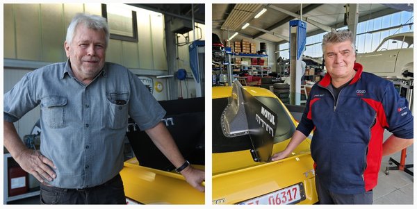 A két motor egyébként teljesen egyforma, ha jól emlékszem K27-es, bitang méretű turbó feltöltők izmosítják, normálisan csak a 102-es versenybenzinnel üzemel kielégítően – kell neki a magasabb oktánszám. Mind a kettő feltöltő természetesen Wastegate-szeleppel szerelt. A két kipufogó alakját is ki kellett találni, a kipufogócső végének ötlete a Ferrari F40-est idézi – onnan másoltuk. Más a fékrendszer is, erősebb. Kísérleteztük ezzel is, e témában pedig már én egyeztettem az Audi TT fejlesztőivel. Legyen elég annyi, hogy a Group C-s autókhoz hasonló, Brembo gyártotta fékrendszere van a kocsinak, természetesen négy tárcsafékkel szerelve.”