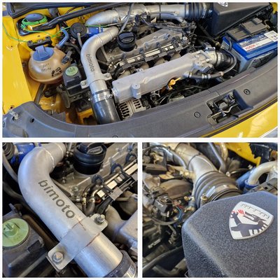 Óriási turbólyuk, a teljesítmény lassan érkezik, de ha megjön, akkor aztán nagyon megjön – ez az igazi pörölycsapás effektus. A váltó érzetre olyan, mintha mindegyik fokozatnak lenne még egy fokozata – a kettesnél lehet ezt a legjobban érezni – ahova be kell húzni. A bimoto használata kimondottan nehézkes, semmi esetre sem az az autó, amivel leugrasz a boltba tejért – ez egy célszerszám, amivel egy dolgot lehet: irdatlan gyorsan menni. Olyan érzés vele egyre mélyebbre nyomni a gázpedált, mintha lejtőn lefelé, egyre jobban gyorsuló tűzkeréken lovagolnál. Rendszeresen lefúj a szelep az utas feje mellett és elengedi a töltőnyomást, a motorok hörögnek, vágyják, hogy pöröghessenek. Igazság szerint, ez volt életem első kipróbált autója, amelyben nem mertem padlóig nyomni a gázpedált – ezt elismerem. Sőt. Mentem egy kört az MTM marketingesével, Nico-val is – aki mellesleg KTM GT4-es versenyautót hajt – ő sem mert padlógázt adni. Jól van, megnyugodtam, tényleg közúton nem csak szerintem életveszélyes a kocsi. Durrognak folyamatosan a motorok, lefúj a Wastegate-szelep, s bitang a gyorsulás, pedig Nico sem nyomta neki padlóig. Túl vad, úgy csörtet előre, mint egy féktelen orrszarvú, mindegy mennyivel kell mennie – nem fogy el az ereje akkor sem, ha 2-essel vagy 3-assal kezdődik a szám, amit a sebességmérő kiír, mindegy mekkora tempóról kell indulnia, ha túl van a turbólyukon bírja szuflával a gyorsulást, bárhonnan képes kilőni, miközben irdatlan masszívnak tűnik a menése is. Bitang jól fekszi az utat, de mivel a két motor nincs tökéletesen szinkronban, bármi megtörténhet azalatt a szempillantás alatt, amíg az egyik késlekedik a másikhoz képest, s ugyanazt csinálják.