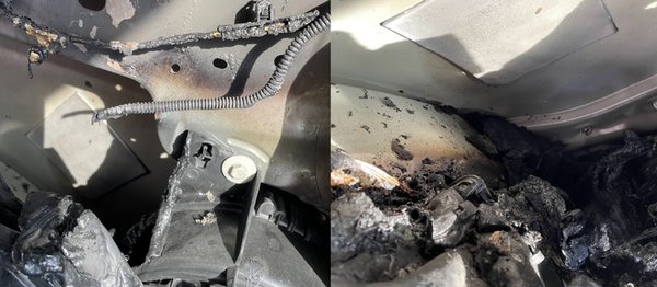 Jól sejtitek, a műanyag-szövet elemek bent maradtak az autóban a hegesztési művelet során, és lángra is kaptak. Van ilyen, csak az hibázik, aki dolgozik, mondhatná a márkaszerviz, Miklós viszont nem volt ennyire megértő.