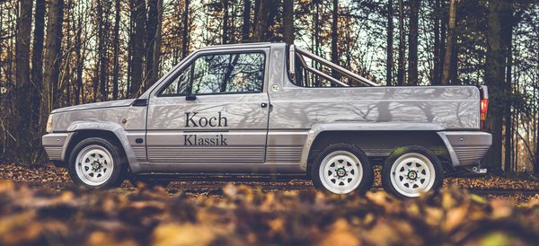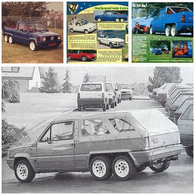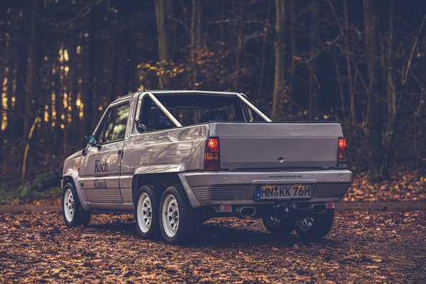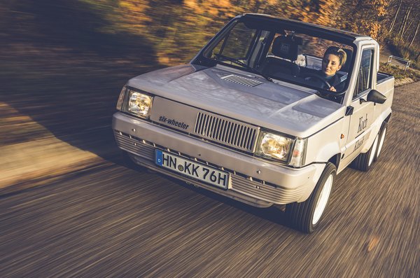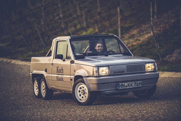 Egyetlen példány készült Németországban a hatkerekű, kétszemélyes, platós karosszériás Fiat Pandából. Nemrég restaurálták, minden csavarját felújították.