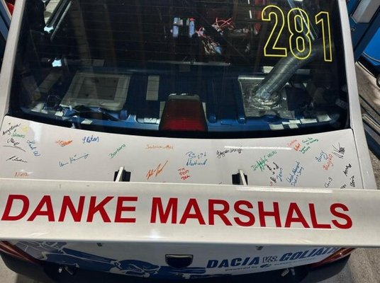 A gáláns adományt stílusosan egy régi parkolóórába töltve adták át, és cserébe mindössze egy kis helyet kértek az aláírásuknak a Logan csomagtartóján. A csapatfőnök, Oliver Kriese azt nyilatkozta egy interjúban, hogy leírhatatlan érzés volt ez a gesztus. Végül még a Dacia hátsó szárnya is kapott egy nagy, 'Danke Marshals' feliratot. Abban az évben egyébként kellett is a plusz: a csapat több versenyen is indulni szeretett volna a Nordschleifén, nem csak a 24 óráson.