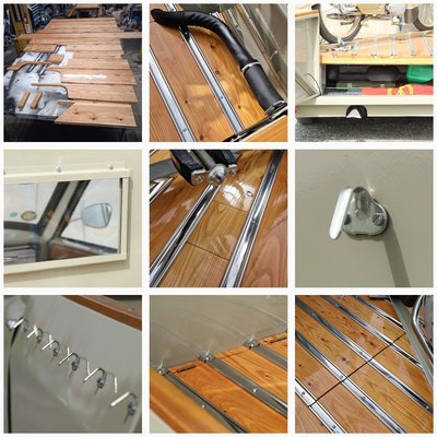 A plató oldalfalának tetejére s a hátsó ajtó tetejére is fa keret került, sérülés esetén egyszerűbb ezt kicserélni vagy javítani, mintha a fém felületet érné sérülés. Bár igazság szerint nem maradtak fenn felvételek arról, hogyan is nézett ki újkorában a plató. Újak a külső rögzítőfülek is, belülre semmi ilyet nem szereltek. Ezekhez a rakományt lehet rögzíteni, vagy a rakteret takaró és védő ponyvát. A kocsi oldalán lévők hátsó kampók rögzítéséhez használt anyák becsavarása elég komplikált feladat, különösen a kocsi hátsó sarkainál lévőkkel szenved sokat az ember, mire alulról eléri a karosszéria belsejébe süllyesztett csavarmenetet az anyával...