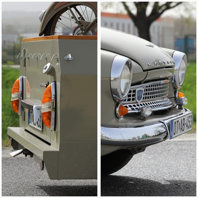 Amíg a karosszéria Gyula munkahelyén készült – ez a Szabó karosszéria műhely, ahol csak veteránokkal foglalkoznak –, a technika rendbe tétele már a saját műhelyében zajlott. Igencsak irigylésre méltó, egy külterületen berendezett garázsokból és műhelyekből álló objektumon rakta össze a kocsit – igazi Paradicsom egy ilyen hely vasakért dobogó férfiszívnek, van itt akna és emelőoszlopok is. A hely, ahova el tud menekülni, hogy hobbijának élhessen. A kocsi első lökhárítója krómozott, újra kellett kezelni a felületet – egyébként három darabból áll. A szórt Wartburg felirat a géptetőn spiáter alapra krómozott betűkből áll, azok eredetiek. A teljes futómű is felújításra került.