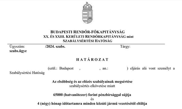 Ezután érdekes fordulatot vett az ügy. A rendőrség feljelentést tett a záróvonalat átlépő fekete autóval szemben, olvasónk ügyében hozott döntését pedig visszavonta, helyette újat hozott. Abban már szó sincs a jogosítvány bevonásáról, a 65 ezer forintos pénzbírság viszont maradt.