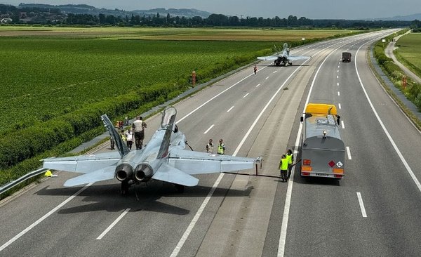 Mint azt kedden mi is megírtuk, szerdán autópályás gyakorlatot tartott a svájci légierő. Ez röviden annyit jelent, kipróbálták milyen az, amikor esetleg harci körülmények között kéne egy sebtiben kialakított reptéren leszállni. A svájci légierő meg is osztott egy képet, ami két F/A-18-as vadászrepülőgép és egy tankolást végző teherautó látható.