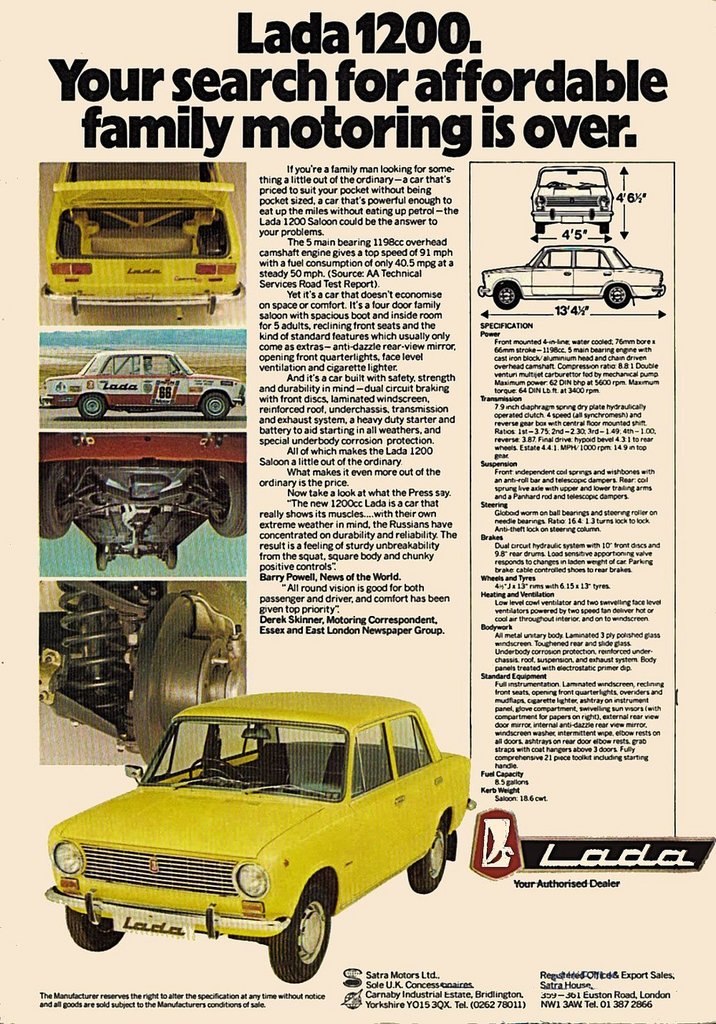 Az Egyesült Királyságban közben megjelent a Satra nevű cég, s több mint 250 kereskedő forgalmazta már a Moszkvicsokat, s több mint tízezer jobbkormányost adtak el belőle. Ők kínálták a Ladákat is – a 2101-es volt az első Lada, amit Britanniában is értékesítettek. De, a Fiattal kötött licencszerződés értelmében a VAZ-nak megtiltották az autó eladását Olaszországban, hogy megvédjék a Fiat hazai piacát, s a 124-gyel versengő exportpiacokon sem értékesíthette azt.