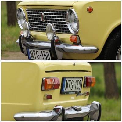 A Zsiguli feliratot azt mi tettük már rá, annak nem kellene rajta lennie. A kürtkarikás kormánya sem a gyári, de az nekem nagy szerelem volt, hamarabb volt kormányom, mint autóm hozzá.