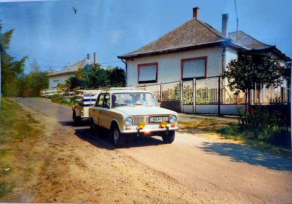 Közben megkerestem az első tulajdonosát is. A szürke forgalmiból tudom az első tulajdonos nevét. Még ritkább, hogy – utólag derült ki – egy ismerős, akivel egy Lada találkozón futottam össze, lakik vele szemben. Megkértem, kérdezze meg Béla bácsit, nincs-e véletlenül régebbi fényképe az autóról. Volt, préshordót húz épp vele utánfutón. Ez valamikor a kilencvenes évek elején készült, mert már az új rendszám volt rajta: a szőlőbe mentek épp vele. Nagyon örülök neki, hogy megvan egy kis darabka az autóm múltjából. Az első tulajdonos végül nem szerette volna látni az újjászületett kocsiját, mert a szíve szakadt meg, amikor el kellett adnia.