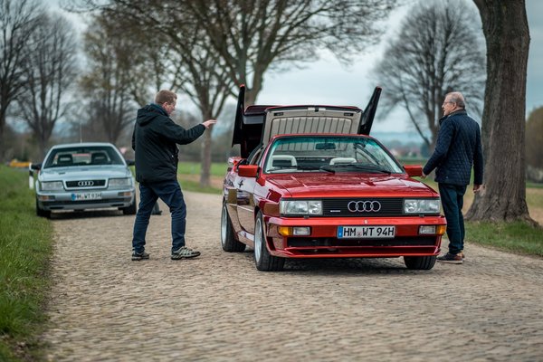 Erre Ferdinand Porsche unokája azonnal rávágta, hogy „quattro!” Így dőlt el a névkérdés, maga Walter mesélte el pár évvel korábban nekem ezt a történetet, amikor egy egész napot töltöttünk együtt, s autóival kocsikáztunk, illetve beszélgettünk egy borongós vasárnap. Ekkor készítettem róla a cikk nyitóképét is. A quattro egyébként a hivatalos Audi nyelvezet szerint mindig kis betűvel írandó, minden formában! Szerintem a történet másik karizmatikus és öntörvényű, legendássá vált vezetőjét egy autós lapban nem kell bemutatni, de aki mégis szívesen olvasna róla, annak ezt ajánlom.
