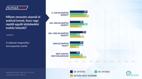 Az is látható a részeredményekből, hogy a legidősebbek - 60 év felettieknél - azonban már kevesebben vállalnának ekkora - plusz 1000 kilométeres utat autóval.