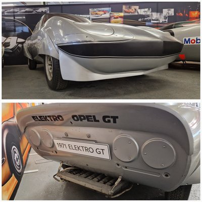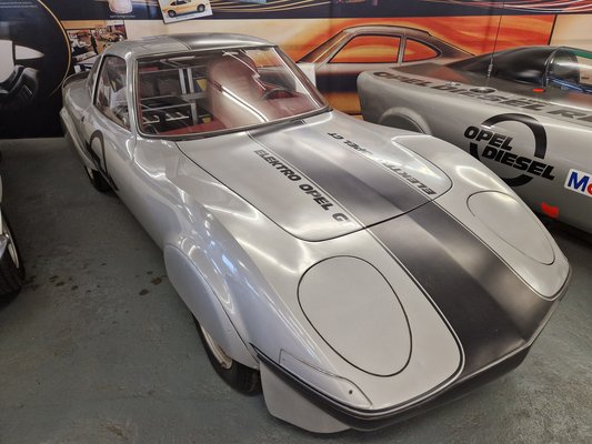 A rekorder autó az Opel rüsselsheimi csarnokában az Opel Classicnál áll, a többi érdekes GT között. Nyitható, csukható, mivel ottjártamkor nem volt feltöltve, így nem lehetett vele gurulni. Vélelmezem, 44 kilométerből ma már sokkal kevesebbre futná erejéből, nem nagyon tudna már önerejéből mozogni, már, ha még tudna...