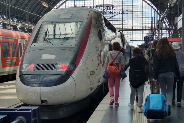Párizs felé egy emeletes TGV-vel utazunk. A vonatra kötelező a helyjegyfoglalás, de mivel Németországból indul, a Deutsche Bahn is ad el rá helyjegyet, 5 euróért, a francia 10 eurós foglalási díjjal ellentétben. A TGV belterének minősége egyébként meglepően silány. Az ülések kényelmetlenek és kevés a lábtér is, komfortban nagyjából minden magyar intercity kocsi magasan veri. Az emeleten WC is nagyon szűk, én a 186 centimmel már rendesen bevertem a fejem a plafonba. A vonatot ráadásul rendesen megkésették a németek, körülbelül 20 perc késéssel érkeztünk a francia főváros keleti pályaudvarára. A németek által okozott késés ellenére, a TGV kiszámítható, pontos vonattípus. Működési elve egyszerű, elindul az állomástól, 320-ra állítja a „tempomatot”, majd 500 kilométerrel később fékezni kezd.